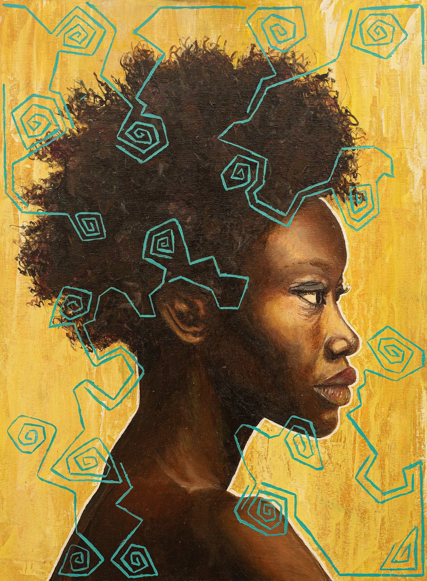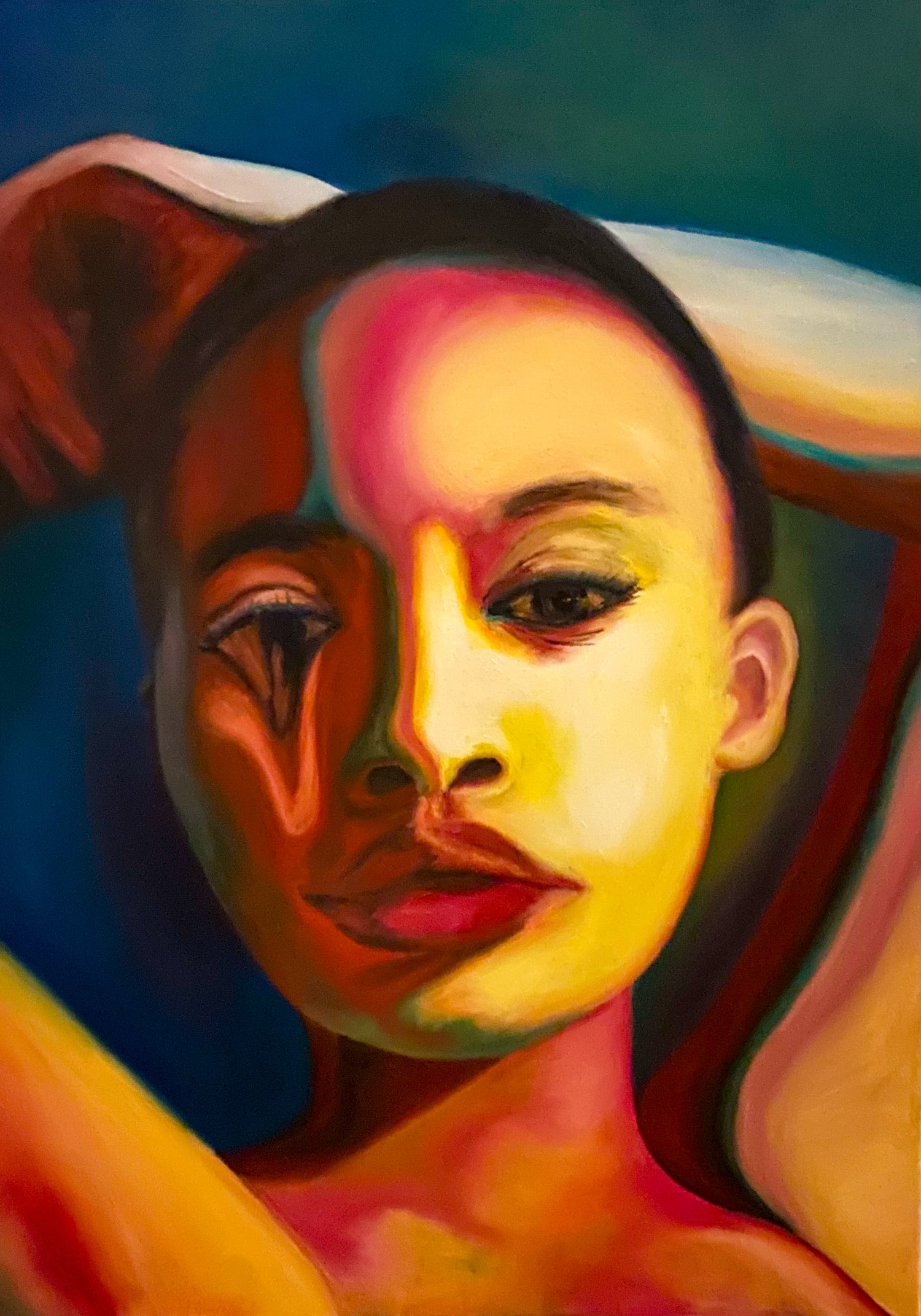 Her was my first piece in oil. The vibrant colours were purposeful to create a ‘pop art—like style and filter-like effect. The blurred lines add to the filter-like effect. Here I experiment with the idea of human commerciality and how people can feel objectified within the systems we operate in.