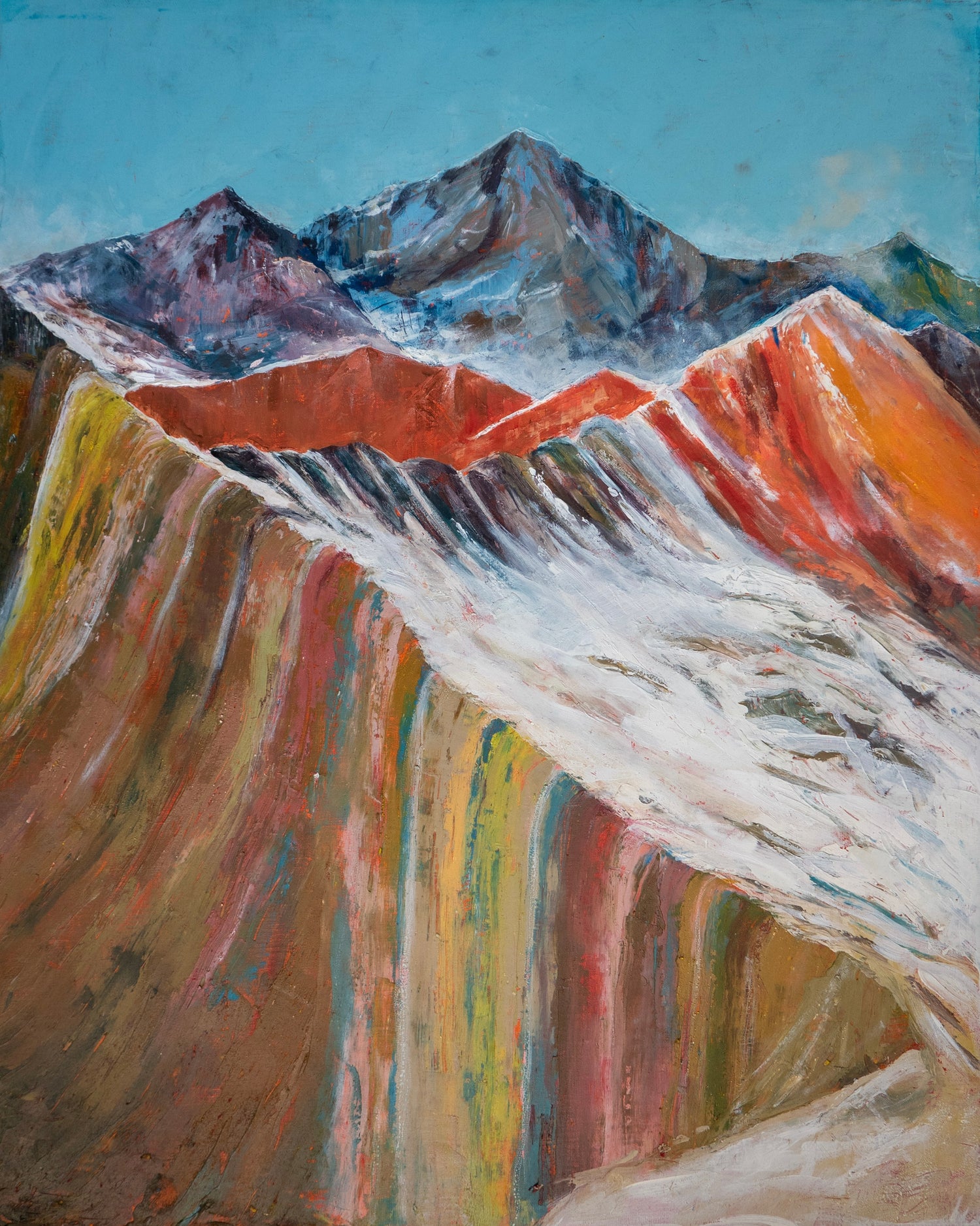 Qicai translates to "seven colours," which describes the vibrant and multi-coloured appearance of the Danxia landform. Though I haven’t been myself, this piece explores the idea that beautiful layers can lie underneath the surface.